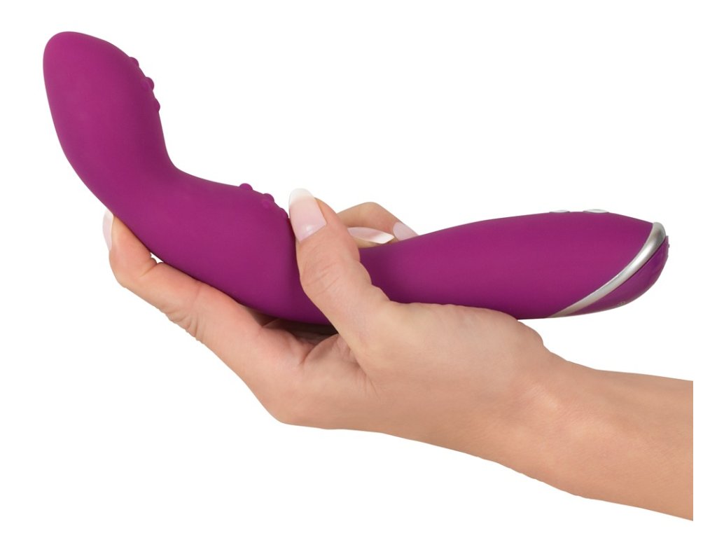 Pomůcka nabízí 7 vibračních režimů pro vzrušující rozmanitost. Měkký povrch a flexibilita vibrátoru umožňují snadné zavedení hluboko dovnitř, aniž by uživatel musel natahovat svaly. Tvar je navržen tak, aby se bez problémů dostal k oběma cílovým bodům. Dodatečné potěšení zajišťují stimulační tečky na tělísku.