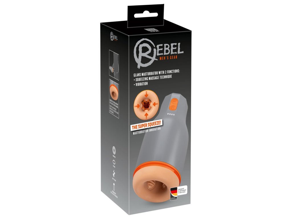 Rebel Glans Masturbátor představuje světovou premiéru v technologii stimulace, navrženou a vyvinutou v Německu. Tento kompaktní masturbátor v elegantní šedé barvě se specializuje na precizní stimulaci žaludu a uzdičky díky unikátní masážní technice "Super Squeeze" a silným vibracím.