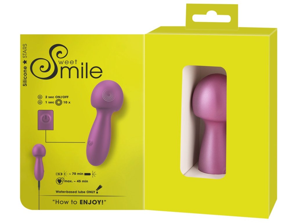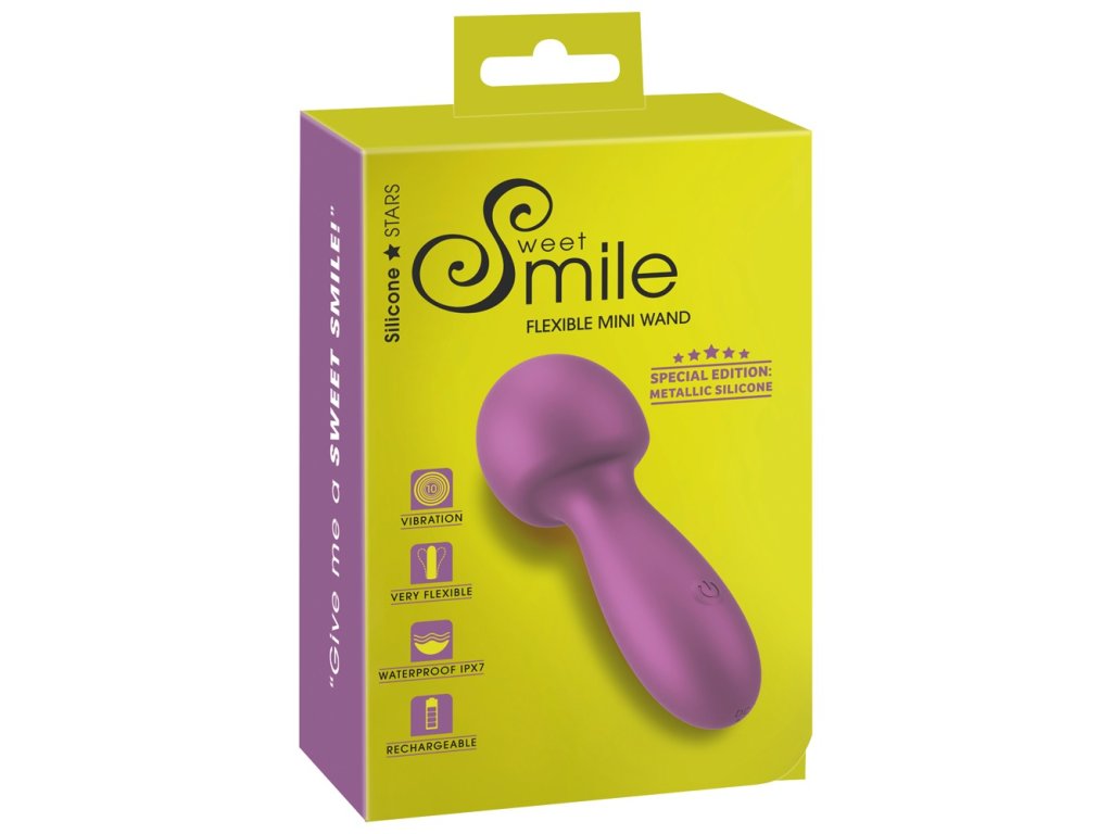 Sweet Smile Flexible Mini Wand je kompaktní a tichý mini masážní vibrátor ze speciální metalické edice silikonu. Má velmi flexibilní hlavici a nabízí 10 vibračních režimů. Je vodotěsný a dobíjecí.