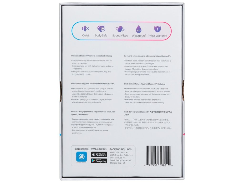 Aplikace Lovense nabízí unikátní funkce, které zvyšují zážitek: synchronizujte vibrace s hudebními rytmy nebo je nechte aktivovat zvukem (hlasem, tleskáním). Máte také možnost vytvářet a ukládat vlastní vibrační programy pro dokonalou personalizaci. Hush 2 je vodotěsný, dobíjecí (včetně USB kabelu) a s celkovou délkou 13,5 cm a zasouvací délkou 11,3 cm (Ø max. 4,5 cm) nabízí ideální rozměry pro intenzivní, ale bezpečné potěšení.