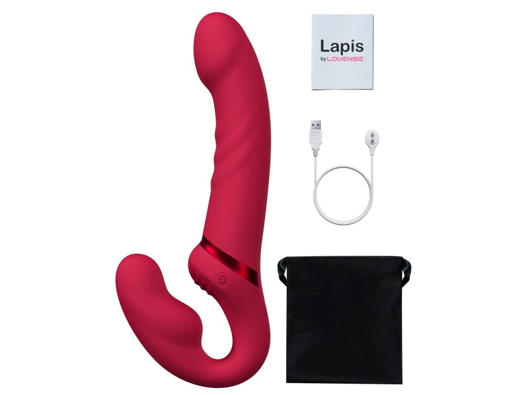 Lovense Lapis je revoluční, bezramenný strap-on vibrátor v růžové barvě, který drží na místě intimními svaly nositelky pro maximální volnost při peggingu a hraní rolí. Je vybaven třemi výkonnými motory pro simultánní stimulaci obou partnerů. Díky aplikaci Lovense můžete ovládat 7 režimů, synchronizovat vibrace s hudbou nebo hrát LDR hry na dálku. Lapis je vyroben ze sametově měkkého silikonu, je vodotěsný a představuje nejlepší nástroj pro dávání i přijímání intenzivního, synchronizovaného potěšení.