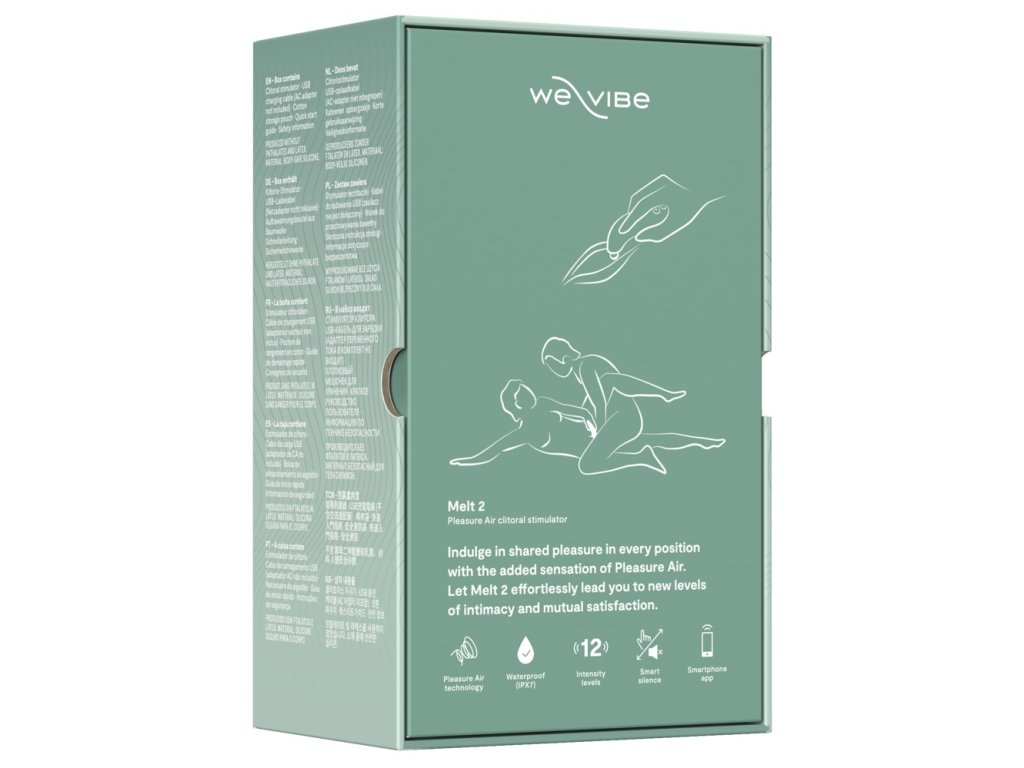 Tento stimulátor je navržen s maximální flexibilitou. Při sólových akcích si díky 12 intenzitám a 6 režimům sání můžete vytvořit perfektně personalizovaný zážitek pro dosažení zaručeného a vícenásobného orgasmu. Pro páry je Melt 2 naprosto ideální. Jeho ergonomický a štíhlý design umožňuje snadné použití během milování, kdy dokáže intenzivně stimulovat ženu, zatímco pár si užívá spojení. A pokud vás dělí vzdálenost, aplikace We-Vibe App a funkce dálkového ovládání, chatu a videa vám umožní sdílet potěšení bez ohledu na to, kde se zrovna nacházíte. Melt 2 tak obohatí váš intimní život v každé situaci.