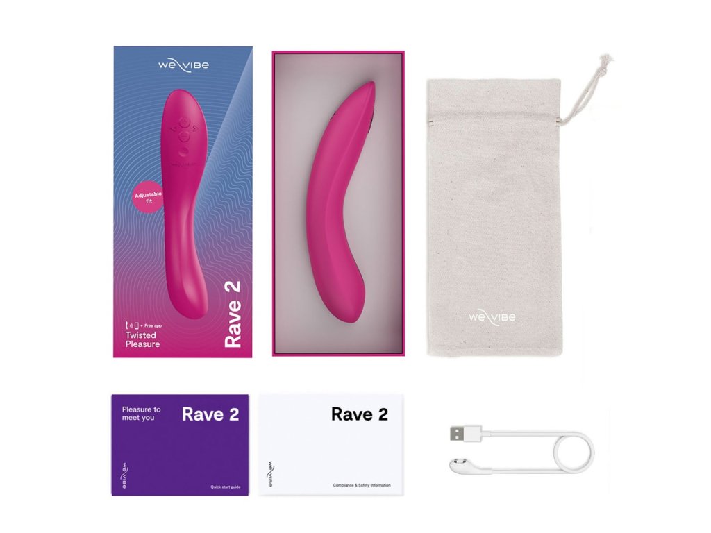 Použití: Aplikujte na vibrátor lubrikant na vodní bázi. Díky svému tvaru se Rave 2 snadno zavádí. Cíleným tlakem a mírným natočením nastavte špičku tak, aby dosedla přímo na citlivou oblast G-bodu. Můžete si vybrat z 10+ přednastavených vibračních režimů pomocí tlačítka na těle, nebo se plně ponořit do nekonečných možností aplikace We-Connect, kde si vytvoříte vlastní sekvence, ovládáte hračku hlasem, či dokonce předáte kontrolu partnerovi bez ohledu na vzdálenost.