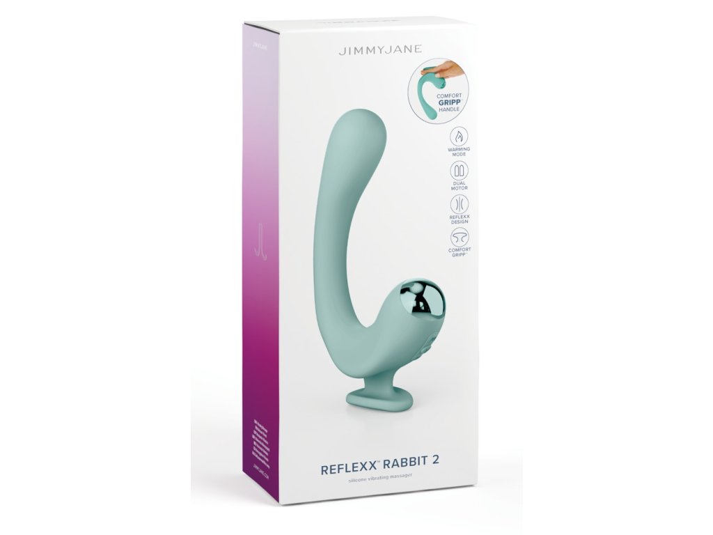 JimmyJane Reflexx Rabbit 2 je ohebný duální vibrátor v poutavé tyrkysové barvě, který představuje čistý dárce potěšení. Jeho jedinečný U-tvar a pružnost zajišťují, že se dokonale přizpůsobí konturám těla a pohybům, zatímco praktická rukojeť pro dva prsty usnadňuje vedení a ovládání. S dvěma motory s 2x 10 vibračními režimy a funkcí ohřevu, která sametově měkký silikon zahřeje na správnou tělesnou teplotu, nabízí Reflexx Rabbit 2 komplexní a luxusní zážitek. Funkce lze ovládat samostatně nebo v kombinaci, což ti dává plnou kontrolu nad tvým individuálním potěšením. Je vodotěsný a vybaven cestovním zámkem, takže je vždy připraven, ať už jsi kdekoli.