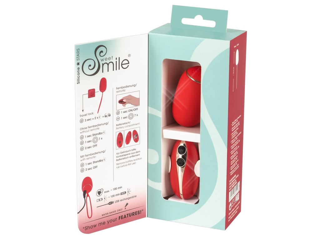 Sweet Smile Vibrační Míček je vaginální pomůcka, která intenzivně stimuluje pomocí 7 tichých vibračních režimů. Má dálkové ovládání, měkký povrch, je vodotěsný a dobíjecí – ideální pro diskrétní hru.