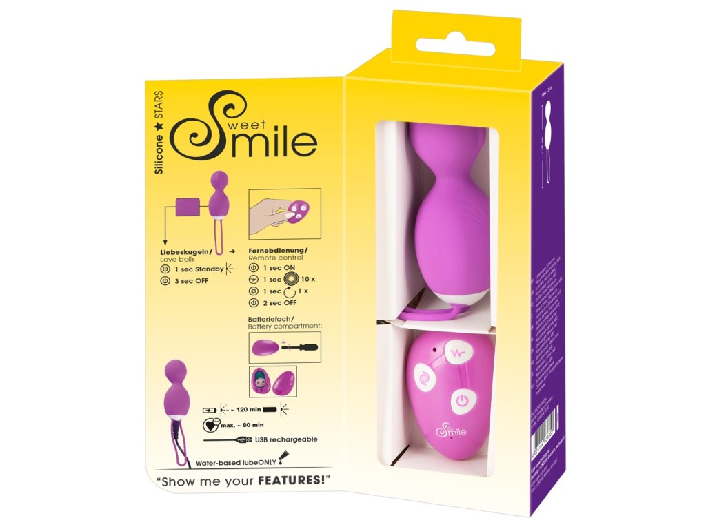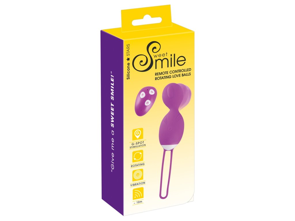 Sweet Smile RC Rotující Míček Love Ball je dobíjecí vaginální míček (61 g) s 10 vibračními režimy a 1 režimem rotace pro bodovou stimulaci G-bodu. Je ideální pro začátečníky v tréninku pánevního dna a ovládá se dálkovým ovladačem.