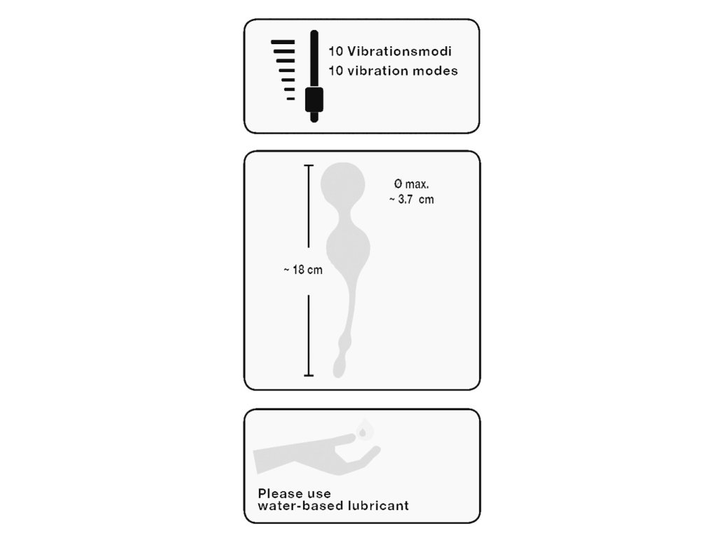 Pro vaginální použití vždy doporučujeme používat lubrikační gel na vodní bázi. Před a po každém použití omyjte vibrační kuličky teplou vodou a speciálním čističem pro zajištění maximální hygieny.