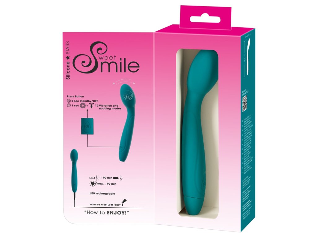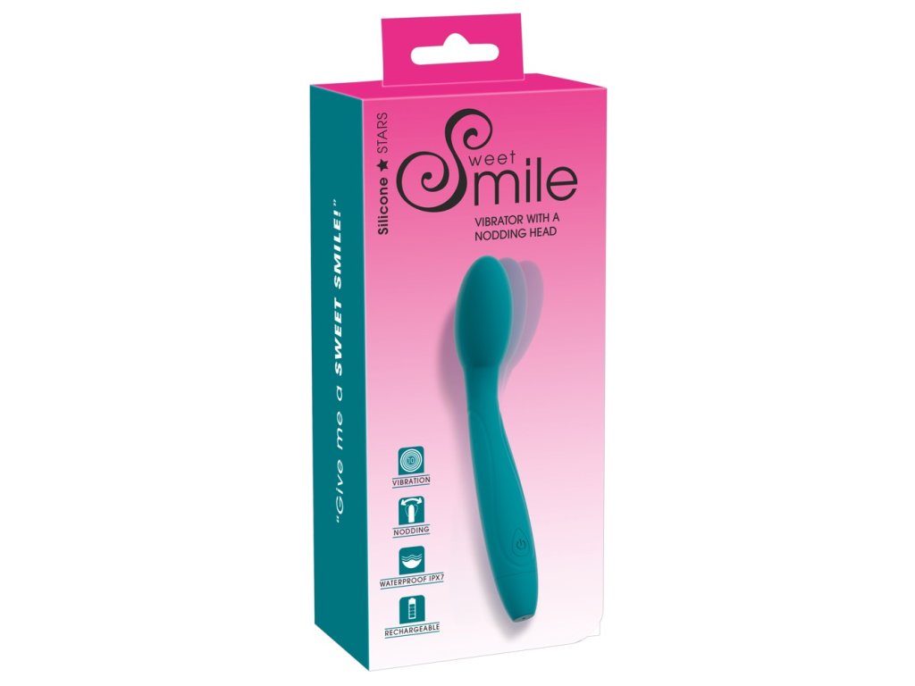 Sweet Smile Vibrátor s Kývavou Hlavou je lehký vibrátor se zakřivenou hlavicí a funkcí kývání/pulzování. Nabízí 10 kombinovaných režimů pro dynamickou stimulaci G-bodu a vagíny. Je vyroben ze sametově měkkého silikonu, je vodotěsný a dobíjecí.