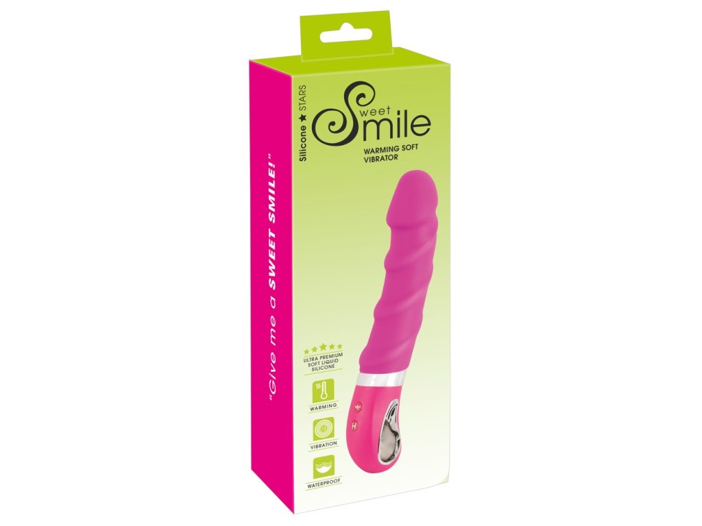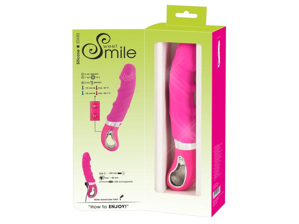 Sweet Smile Hřejivý Realistický Vibrátor je vibrační pomůcka s funkcí ohřevu až do 45 °C (lze použít samostatně). Má výrazný, drážkovaný žalud, 12 vibračních režimů a je vyroben z bezešvého tekutého silikonu. Je vodotěsný a dobíjecí.