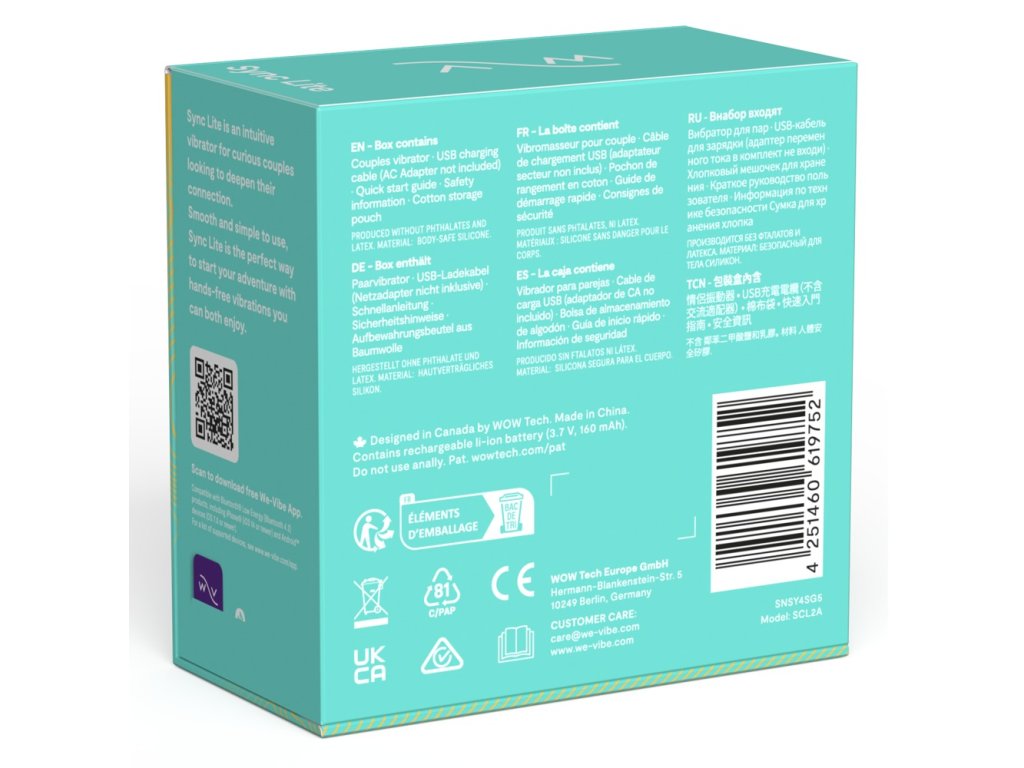 sync Lite je nejdostupnější a kompaktní vibrátor navržený pro intenzivní duální stimulaci G-bodu a klitorisu současně. Díky ergonomickému tvaru perfektně sedí a nabízí hluboké a cílené vibrace. Hračka se snadno ovládá a je plně kompatibilní s aplikací We-Connect, která odemyká neomezené možnosti vibračních programů. Diskrétní, dobíjecí přes USB a vyrobený z hebkého, bezpečného silikonu – skvělý a chytrý pomocník pro vaše nejhlubší prožitky.